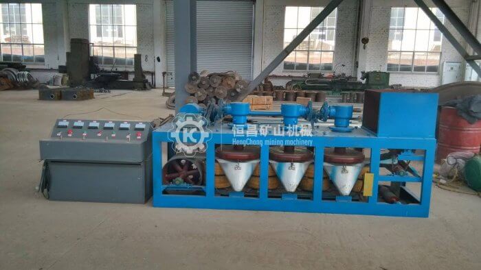 CP3型號三盤帶式磁選機設備可根據礦物的磁性差異,可通過調節各級磁盤勵磁電流形成不同強度的磁場來對礦物進行高效分離,也可調節各級磁盤與被選礦粒之間的感應距離來得到不同的磁場感應強度,達到多種礦物的一次性分離。
