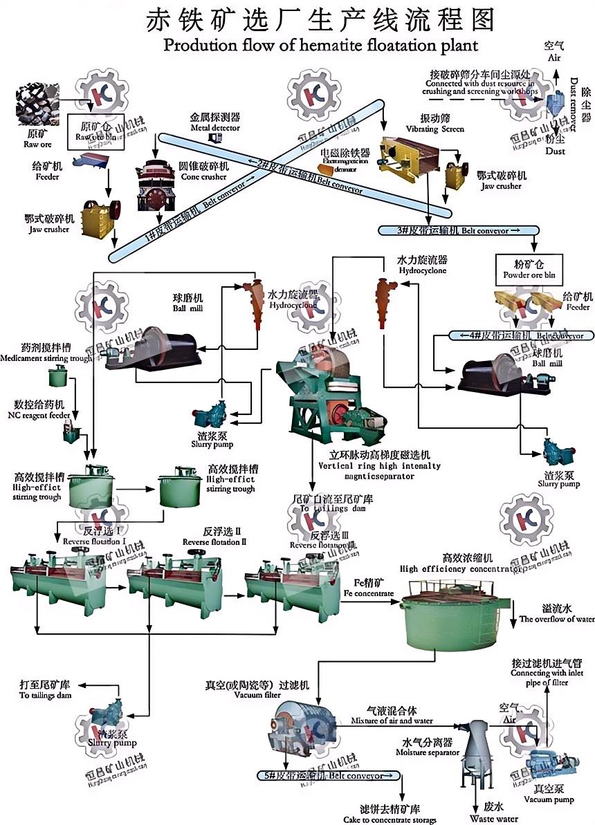 日處理5000t/d赤鐵礦工藝設備流程圖 Hematite equipment with the capcity of 5000t/d for extraction and technics flow chart