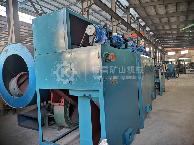Electrostatic separation is a kind of beneficiation method that makes use of the difference of minerals’ electrical conductivity for electrostatic separation in the corona field. This machine is double-drum electrostatic separator. The electrode is combination electrode. Drums and racks are all connected to the earth wires. The surface of drum is kept at a certain adjustable distance from the high voltage electrode. This distance is called polar distance. After the negative electricity of high-voltage power supply is connected to the electrode, corona field and electrostatic field are produced between the electrode and the surface of drum. As the corona field releases electrons uninterruptedly after the selected minerals are taken to the high-voltage electric field by the drum, both conductor minerals and non-conductor minerals obtained negative charges. The difference lies in that the electrical property of conductors and non-conductors is not the same: Conductor minerals can very quickly throw the gained electric charges in the ore receiving bucket along the direction of the drum tangent through the action of centrifugal force and gravity produced by the drum. However, non-conductor minerals are different. They can not immediately divert the gained electric charges. The surface of the drum produces surface suction. It is absorbed to the drum surface and then turns to the rear. When they are brushed by the hairy brush, they fall into the non-conductor ore receiving bucket in the rear. Middling ores whose conductivity is between that of conductor and that of non-conductor fall into the middling ore bucker and become middling ores so as to realize separation. It is one of the important types of typical equipment at present.