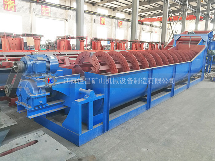 水力分級(jí)機(jī)經(jīng)常根據(jù)礦粒粒度、形狀和密度的不同用在礦物加工中。雖然水力分級(jí)設(shè)備種類繁多,但是近些年來(lái),干擾床分級(jí)機(jī)占據(jù)了水力分級(jí)設(shè)備的主流。傳統(tǒng)的設(shè)計(jì)是將沖洗水通過(guò)水力分級(jí)機(jī)分級(jí)室里一組均勻分布的管道引入到上部敞開的水力分級(jí)機(jī)容器中。在運(yùn)行過(guò)程中,給料給入水力分級(jí)設(shè)備的上端,并進(jìn)行沉降。因此,向上的沖洗水對(duì)懸浮顆粒形成了一個(gè)流態(tài)化的干擾床。床內(nèi)狹小的空隙使水產(chǎn)生很高的流動(dòng)速度,從而阻止了低沉降速度顆粒的滲透。