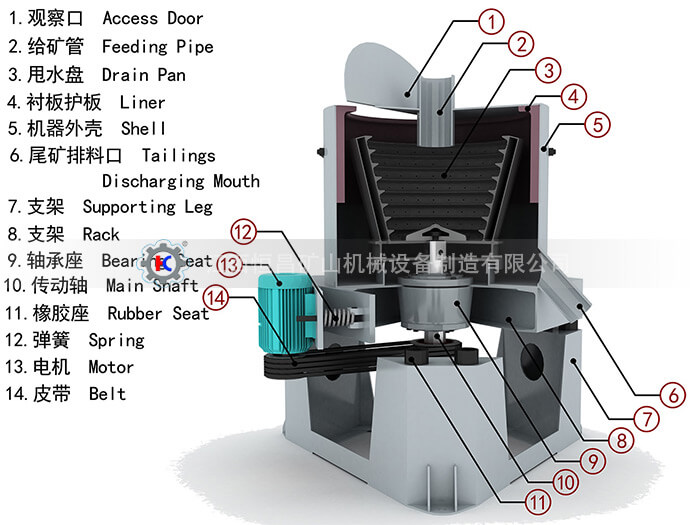 尼爾森選礦離心機是由給礦管、機架、尾礦槽、電機、傳動軸承和選礦部件等部分組成。